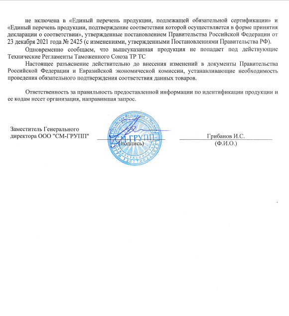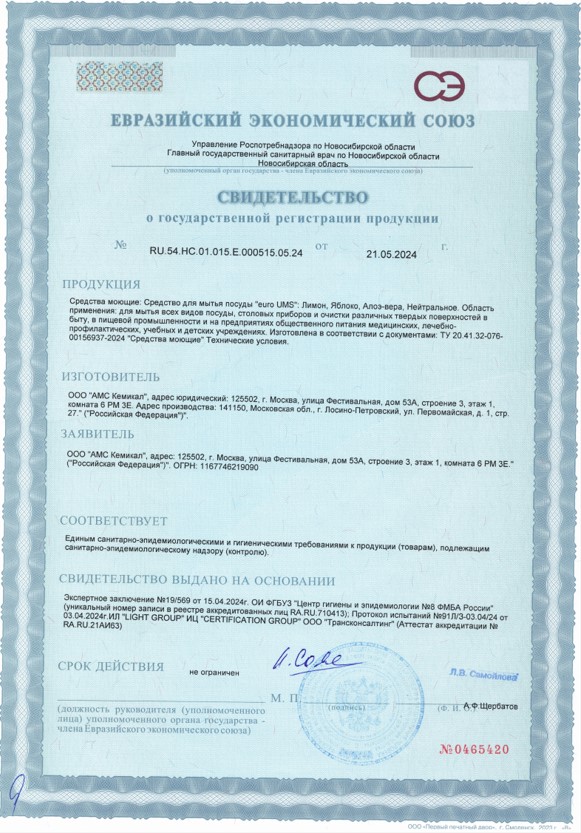 Сертификат соответствия №RU.54.НС.01.015.Е.000515.05.24