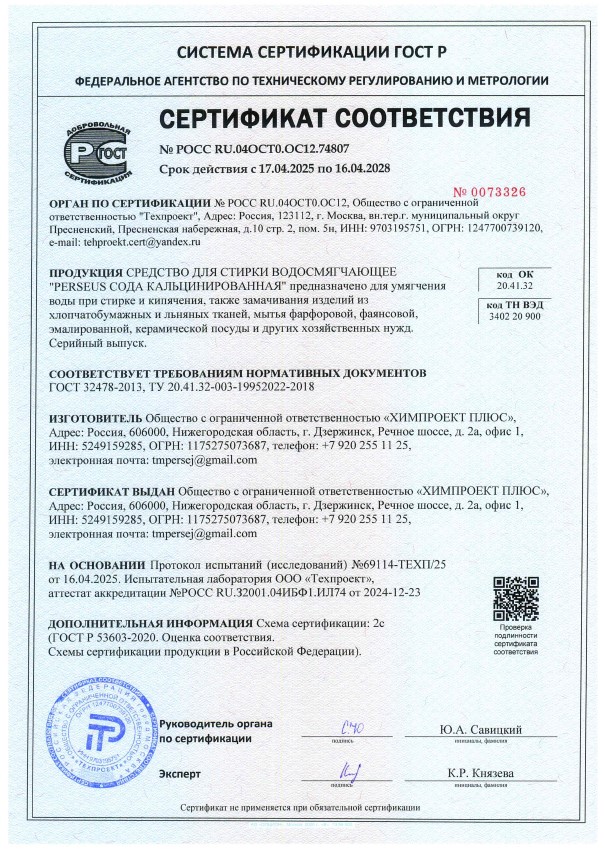 Сертификат соответствия №РОССRU.04ОСТ0.ОС12.74807
